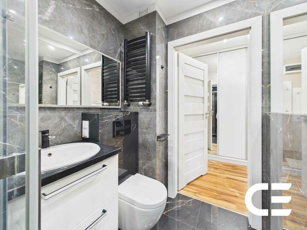 nowoczesna łazienka z wielkoformatowymi płytkami (120×60), a także