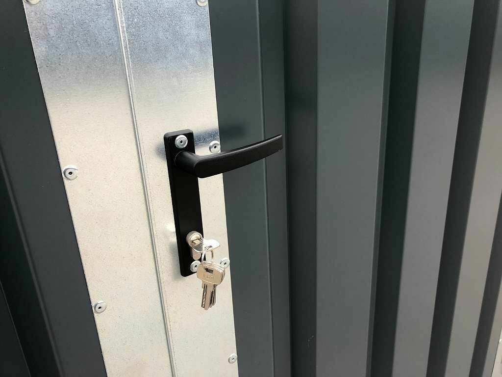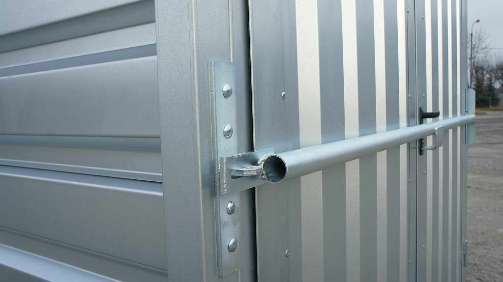 Drzwi można zabezpieczyć dodatkowo sztabą antywłamaniowąKontenery dostarczane są w pozycji transportowej (do rozłożenia).