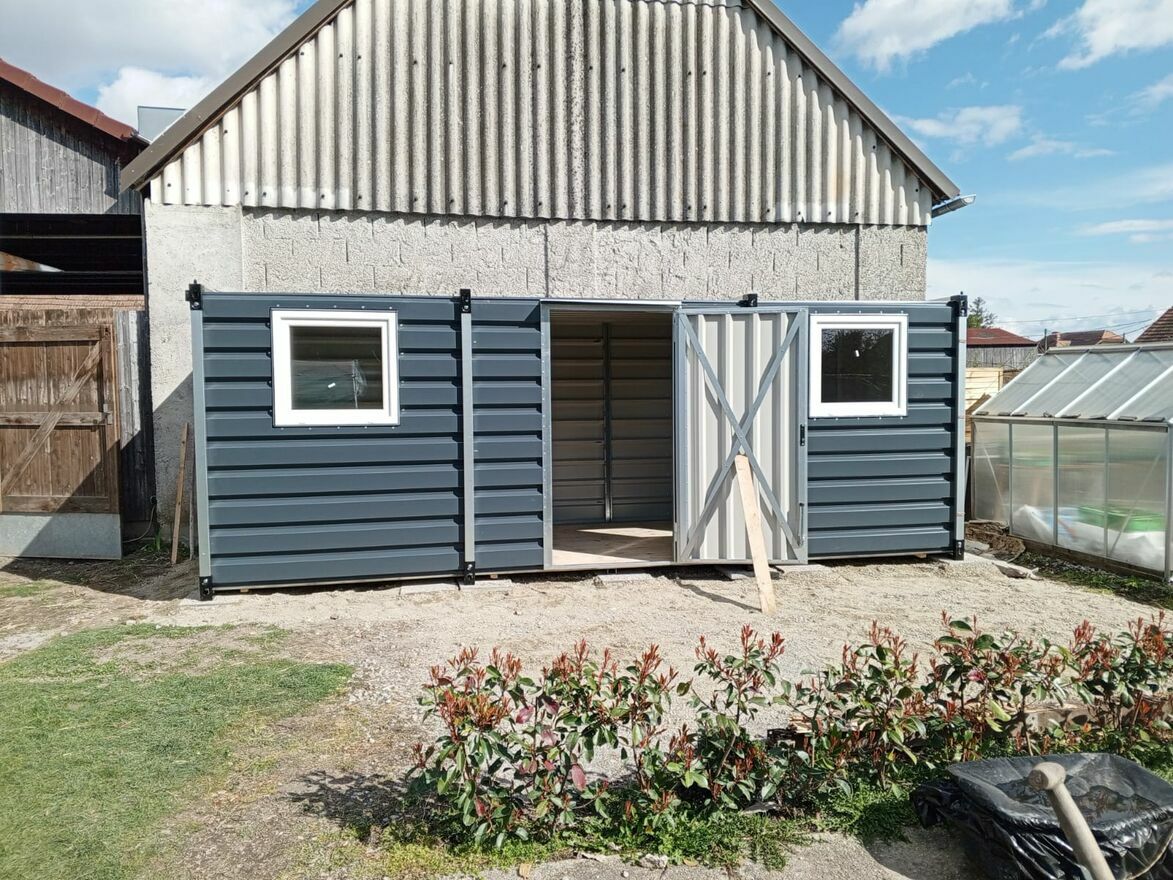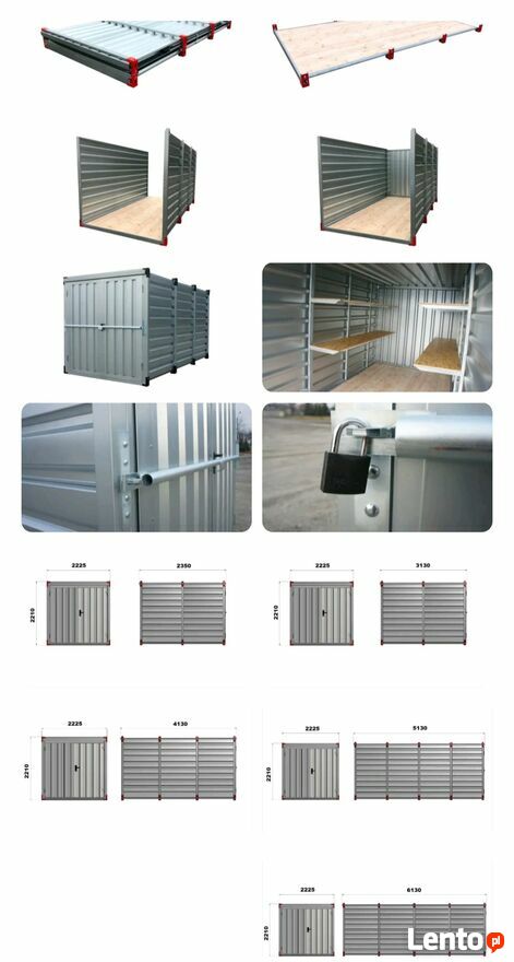 OPISPojemny kontener o wymiarach 2,2 m x 3, 2,2 m x 4, 2,2 m x 6 m jest przydatny do przechowywania większych narzędzi lub małych pojazdów.