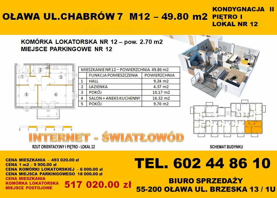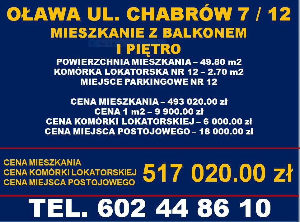 Mieszkanie nr - 12 - WOLNE DO SPRZEDAŻY