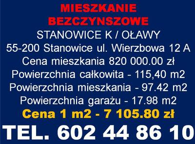 Sprzedam nowe mieszkanie 4 pokojowe z ogródkiem w dwulokalowym budynku mieszkalnym ...