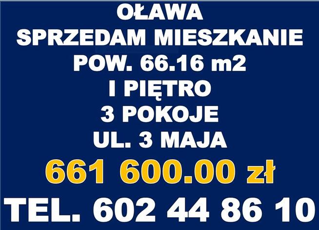 Sprzedam mieszkanie 3 pokojowe z tarasem w Oławie przy ul. 3 Maja Doskonała lokalizacja Centrum miasta I ...
