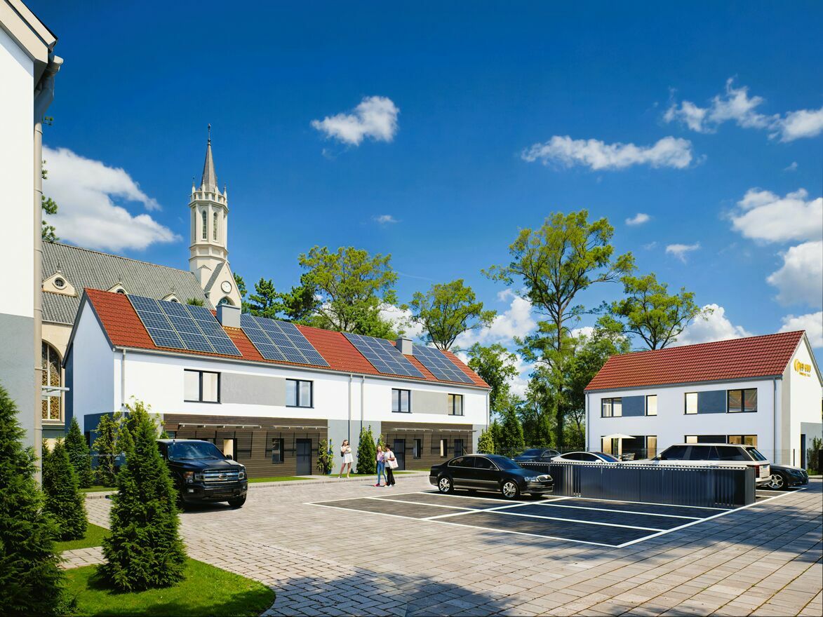 HARMONIA PARK – 14 nowych mieszkań w zabudowie szeregowej (parter, piętro i poddasze nieużytkowe) z ogródkiem, fotowoltaiką i parkingiem w CENIE! Bezczynszowe!Stanowice, 1 km od Oławy