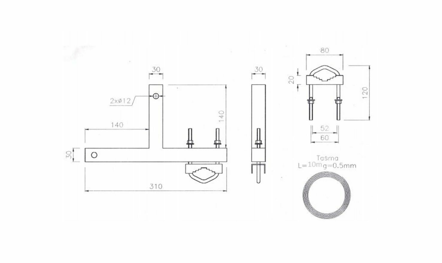 śruby wraz z nakrętkami napinającymi taśmę: 4 x M12 ( twardość 8.8 ) Jedyni na runku stosujemy tą twardość śrub!